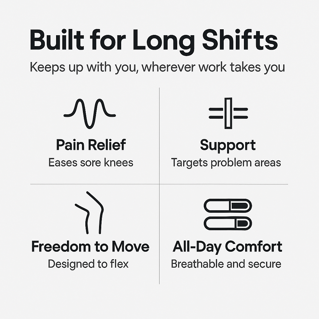 If you stand, bend, lift or walk all day — your knees carry the load. KneeShift™ gives instant relief and stability so you can focus on your job, not the pain.
